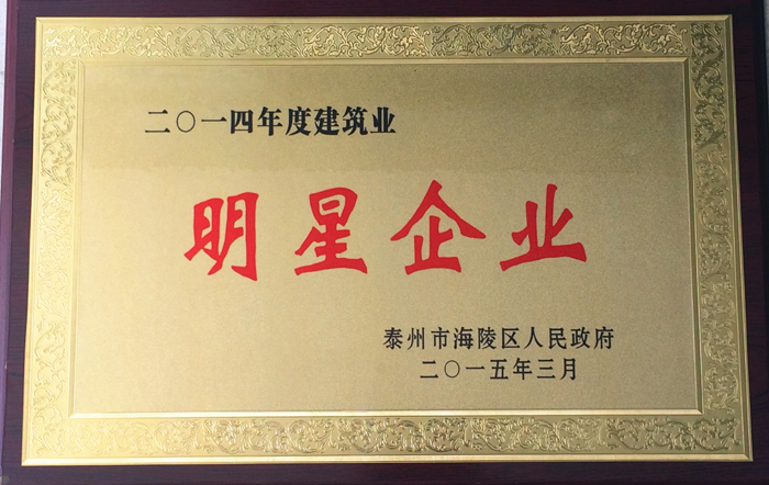 熱烈祝賀我公司被評(píng)為“泰州市2014年度建筑業(yè)明星企業(yè)”