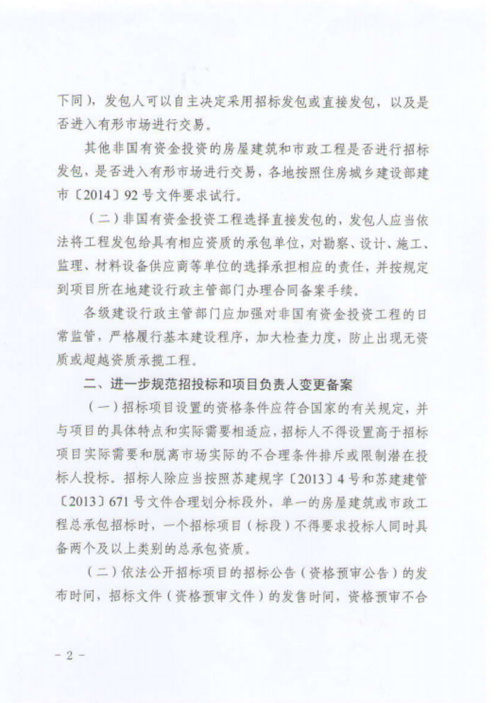 江蘇省住房和城鄉(xiāng)建設(shè)廳關(guān)于明確非國有資金投資工程發(fā)包方式等有關(guān)問題的通知